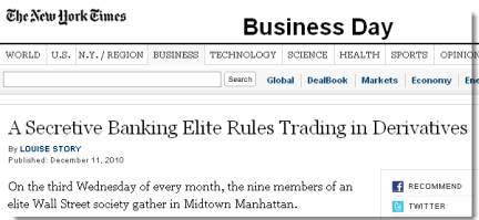 The informed public is already suspicious of Wall Street's secrecy and market manipulation. The New York Times headline of December 10, 2010 shows the realty of the situation. This is happening under the Dodd-Frank financial reform legislation. What happens when Gensler's prediction of a separate, unregulated derivatives market operates without regulation as allowed by the financial reform? Another meltdown is in the works thanks to the legislation we were told would make sure that never happened again.