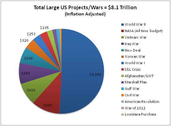So how does $8.5 trillion dollars compare with the cost of some of the major conflicts and programs initiated by the US government since its inception? To try and grasp the enormity of this figure, let’s look at some other financial commitments undertaken by our government in the past: