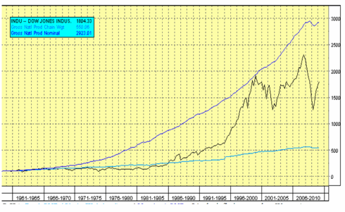 As you can see, when we account for inflation, the US economic “miracle” of the last 30 years is in fact not all that miraculous. Take away easy credit and Fed funny money and the US GDP has barely grown at all since the ‘70s.