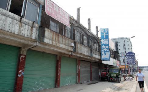 Boarded up shops in the suburbs of Zhangmutou. Photo: May Tse