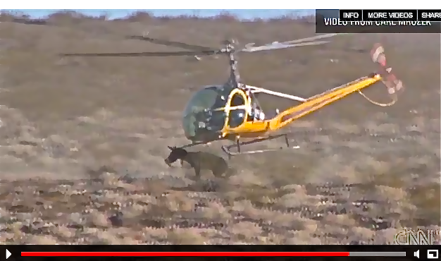 Since when is it humane to strike a stallion with the blade of the helicopter – and the pilot was so bent on doing this that he nearly failed to pull the helicopter up in time, nearly crashing into the hillside in this poorly laid out trap site;