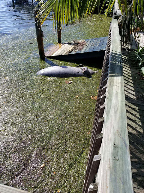 A dead manatee floated up in Anna Maria Sound Aug. 26 to the dock at the Sunrise Lane home of Holmes Beach Commissioner Judy Titsworth.