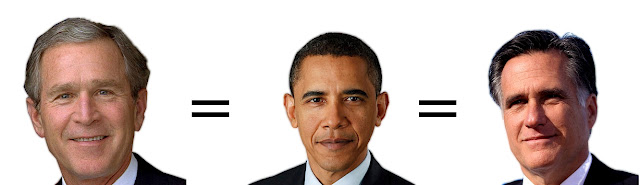 Image: Bush = Obama = Romney. Professional spokesmen, representative not of the American people but of Fortune 500 multinational corporations and banks. Since the time of JP Morgan 100 years ago, the corporate-financier elite saw themselves as being above government, and national sovereignty as merely a regulatory obstacle they could lobby, bribe, and manipulate out of existence. In the past 100 years, the monied elite have gone from manipulating the presidency to now reducing the office to a public relations functionary of their collective interests. Only tipping the balance of power from corporate-financier monopolies back to our local communities can change anything – this cannot be accomplished by merely “voting.”