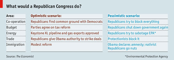John Boehner is their man and taking tea with genuine Republican conservatives is less likely. RINO’s and NeoCons have reserved seats at the table, and populists are reduced to a segregated minority. Mitch McConnell loves to broker deals. Oh, the money interests will rally to the insider arrangement that the Economist so plainly wish will be an era of cooperation.