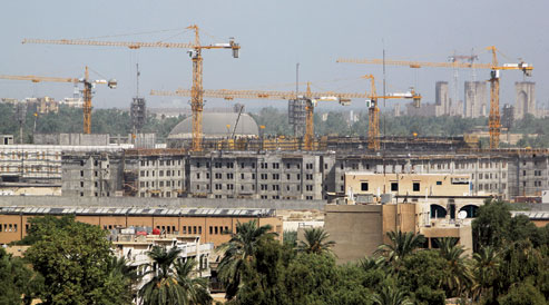 Photo: The new United States Embassy rises above Baghdad—one of the only projects in Iraq being completed within budget and on time. Daniel Berehulak/Getty Images.