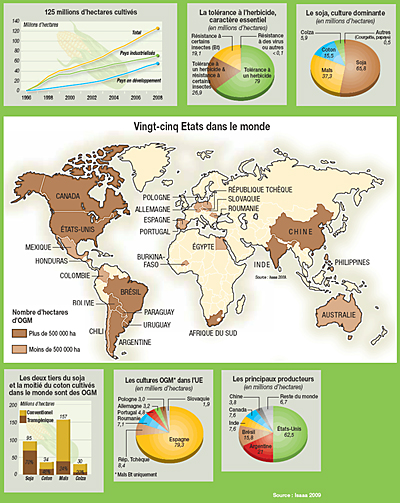 Rejected by a majority of European citizens, transgenic crops have taken root only marginally in the Old Continent: 108,000 hectares in 2008 in seven EU countries, three-quarters of them in Spain. But they've made their way elsewhere.