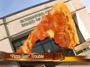 In the past, a gunmaker's name on a pen and a drawing of a space weapon have been enough to bring down school officials' wrath on students; now it's a piece of pizza.