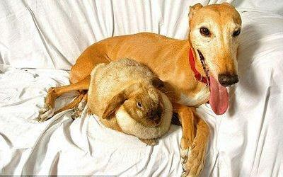And one roe deer fawn. Tiny Bramble, 11 weeks old, was found semi-conscious in a field. Upon arrival at the sanctuary, Jasmine cuddled up to her to keep her warm, and then went into the full foster mum role. Jasmine the greyhound showers Bramble the Roe deer with affection and makes sure nothing is matted.