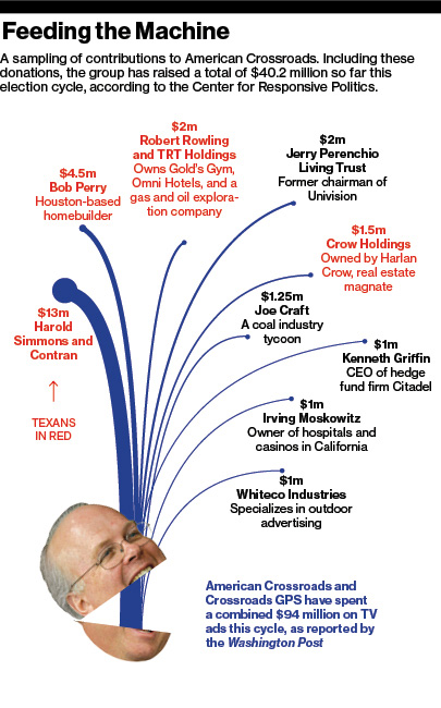 Rove pitched his proposed startup as a more professional alternative, one built to have impact in 2010 but endure long beyond. “The business model of a consultant-driven, vendor-directed entity that hired itself increasingly lacked credibility with donors and was unsustainable,” Rove explains. Among those who were convinced and made big contributions: Richard Baxter Gilliam, a Virginia coal mogul; Houston homebuilder Bob Perry; and Harold Clark Simmons, a Dallas industrialist.