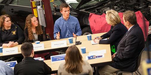 Clinton’s campaign touted her visit to Kirkwood Community College in Cedar Rapids as an opportunity to discuss education policy and college affordability on the campaign trail: