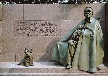 whole trip to Capitol Hill and this report. The first picture shows the Roosevelt Memorial from a distance. The second is a close-up of the inscription therein. This photo was obtained from a postcard in the gift shop of the Capitol Building that visitors traverse prior to exiting the nation's leading policy-making site. The inscription reads: