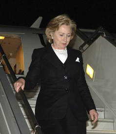 Secretary of State Hillary Clinton arrives in Johannesburg on Thursday. (Photo: Reuters)