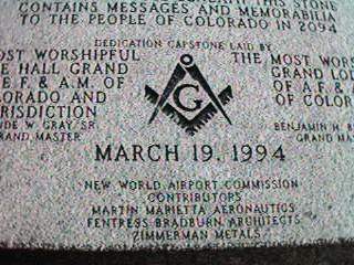 - The dedication or capstone of the new Denver Internation Airport is a masonic symbol.
