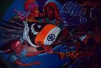 - Another Mural depicts a green giant "Darth Vader" like figure wearing a gas mask destroying a city